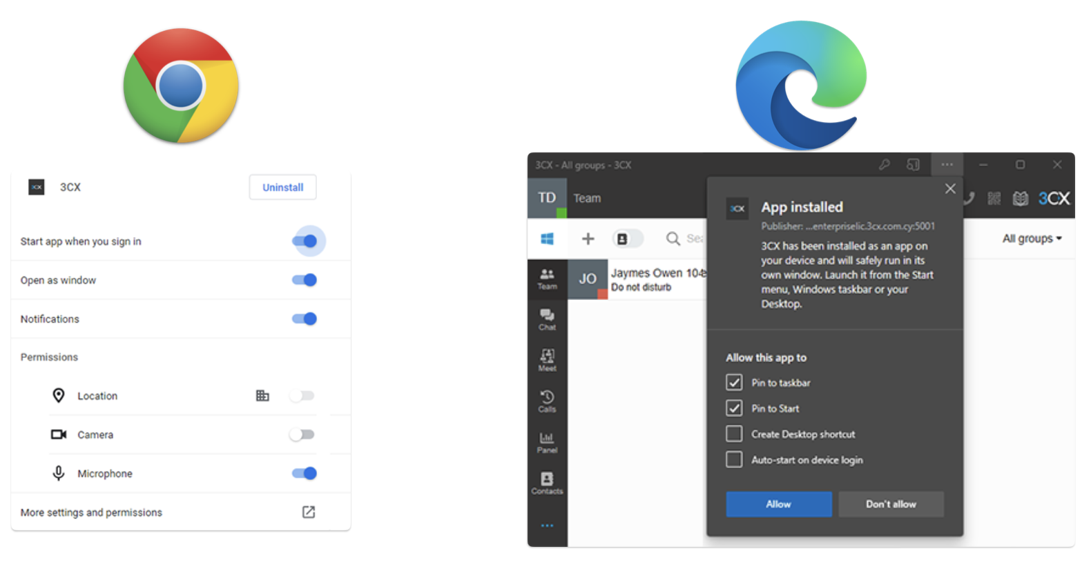 Þegar við höfum klárað að sækja appið í tölvuna okkar er gott að fara yfir tilkynningar og stillingar á appinu, sjá til þess að tölvan veiti 3CX þau leyfi sem það þarf til að virka rétt.